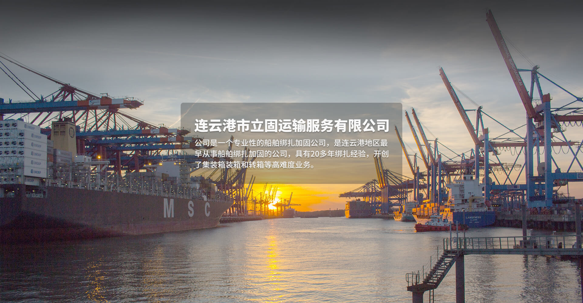 連云港市立固運輸服務(wù)有限公司成立于1997年,是集生產(chǎn)、銷售于一體的實體型企業(yè),主要經(jīng)營范圍包括國內(nèi)外船舶貨物綁扎加固,船舶物料供應(yīng)與回收;專業(yè)加工生產(chǎn)各類型的木托盤、木制包裝箱、免熏蒸膠合板木托盤,膠合板木箱等,并為客戶設(shè)計定制、安裝服務(wù)。